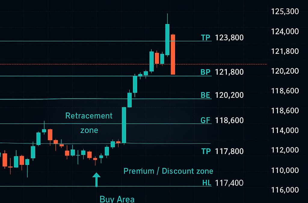 Saat ini: Terjadi reaksi dari area premium (ATH 125K) → potensi retracement ke zona diskon.